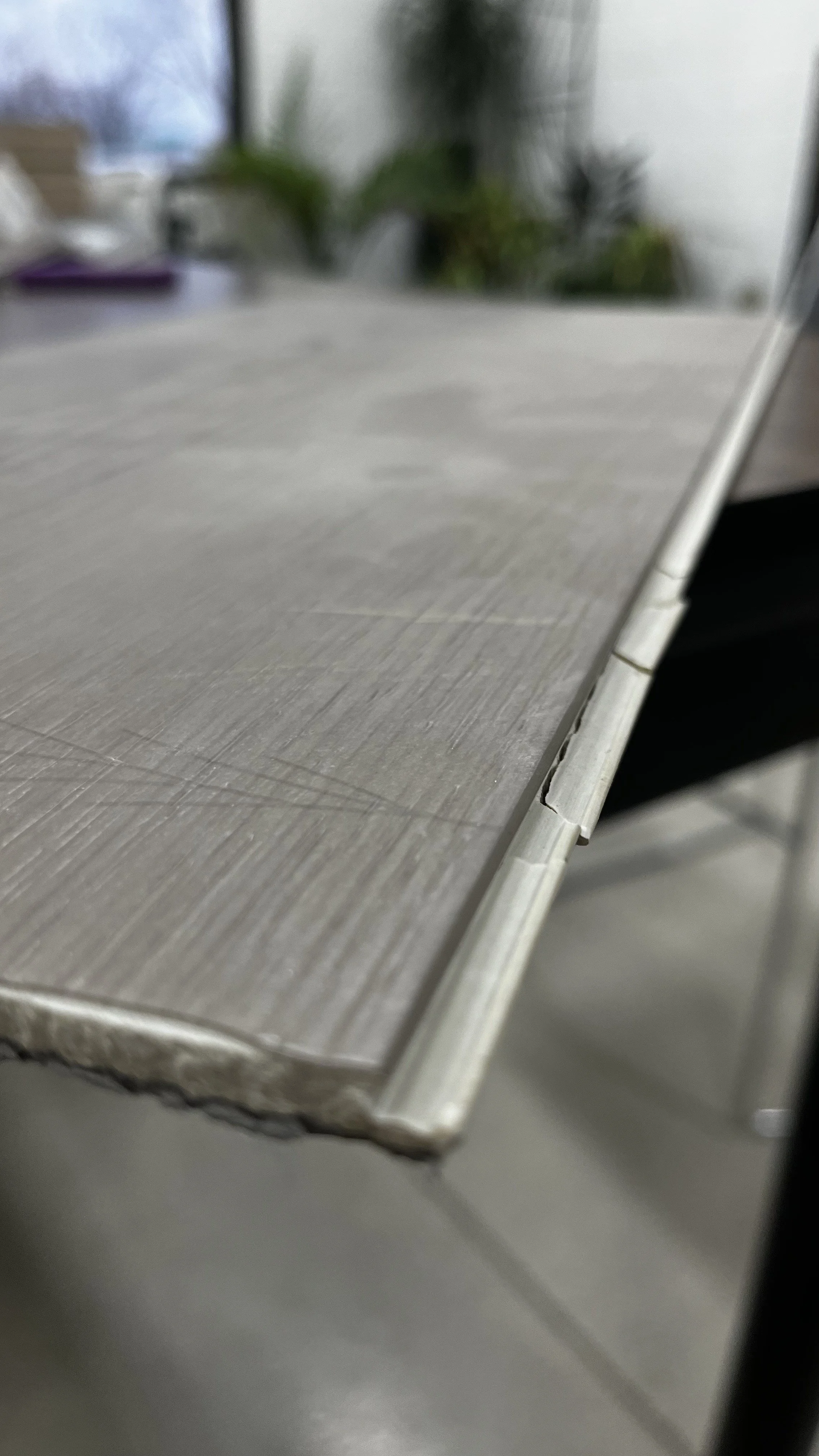 Moving on from the install and to the performance of a click-together product, you already have to be careful with things like rolling chairs, dragging furniture, furniture weight--really anything that could put pressure on the edges of the plank where the mechanism is at. Roller chairs can put enough force to pull boards apart, and when they are pulled apart, the mechanism breaks. Same idea with dragging furniture. If something is too heavy without providing support to the furniture piece and/or the floor, that weight puts a lot of pressure on the boards and can thus snap. That's why you want a thicker product. But again, not too thick because now the board can't adjust to any changes in the room or subfloor. It’s like going back to the last point, If a lump forms in the subfloor and a really, really thick product (say, 14mm thick) is over the subfloor, now the product is really floating and can crack in the middle of the product where the hump is at--not just the locking mechanism.